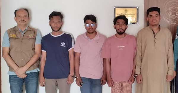 গ্রেপ্তাররা হলেন- ১০ নম্বর উত্তর কাট্টলির জয়নাল আবেদিনের ছেলে নাজমুল আবেদিন, ১০ নম্বর সিটি গেট উত্তর কাট্টলি মাইনুল আমিন পারভেজের ছেলে নইমুল আমিন ইমন (২২), সিডিএ ১ নম্বর আবাসিক এলাকার আরাফাত হোসেন ফহিম (২২) ও রিসতি বিন ইউসুফ (২৩)।