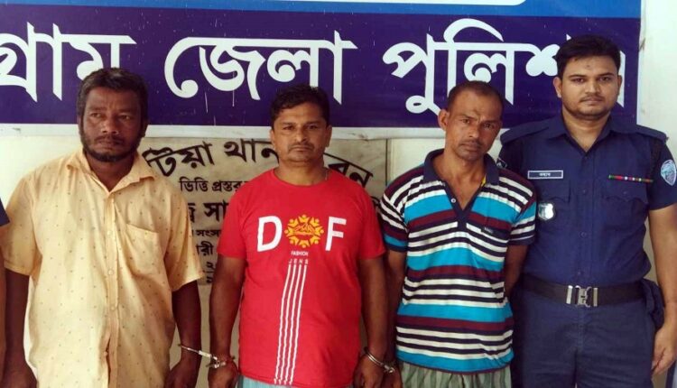 আটকৃতরা হলাে- উপজেলার হাইদগাঁও ইউনিয়নের শফিউর রহমানের পুত্র মাে. মহিউদ্দিন (৪০), একই এলাকার মৃত নুরুন নবীর পুত্র সাবেক ইউপি সদস্য নুরুল হক (৪৫) ও কেলিশহর ইউনিয়নের আবদুল মালকের পুত্র সাবের আহমদ প্রকাশ সাইফু (৩৫)।