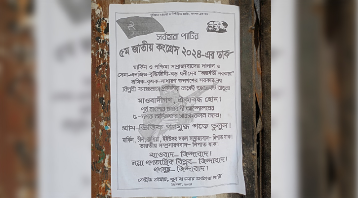 পোস্টারে বিভিন্ন লেখার মধ্যে রয়েছে, ‘সর্বহারা পার্টির জাতীয় কংগ্রেস ২০২৪-এর ডাক; বিপ্লবী গণক্ষমতা প্রতিষ্ঠার লড়াই অব্যাহত রাখুন’, ‘মাওবাদীগণ,ঐক্যবদ্ধ হোন’, ‘পূর্ব বাংলার মাওবাদী আন্দোলনের ৫ দশক অভিজ্ঞতার সার সংকলন করুন’, ‘নয়া গণতান্ত্রিক বিপ্লব-জিন্দাবাদ’, ‘গণযুদ্ধ জিন্দাবাদ!’