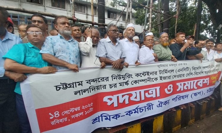 চট্টগ্রাম বন্দরের নিউমুরিং কনটেইনার টার্মিনাল (এনসিটি) ও লালদিয়ার চর বিদেশি প্রতিষ্ঠানকে ইজারা দেওয়ার প্রক্রিয়ার প্রতিবাদে ‘পদযাত্রা ও সমাবেশ’ কর্মসূচিতে তারা এসব কথা বলেন।