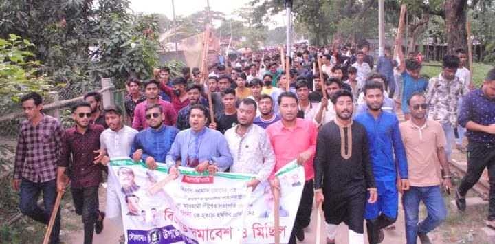 সোমবার (৯ জুন) বিকেলে অনুষ্ঠিত বিক্ষোভ মিছিল উপজেলার প্রধান সড়ক প্রদক্ষিণ করে ।