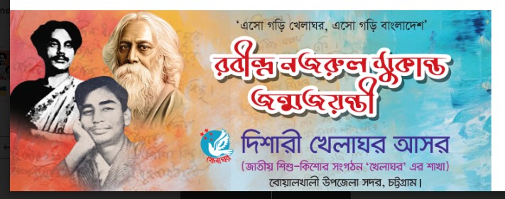 আগামীকাল ১৪ জুন ২০২৪ ইংরেজী শুক্রবার বিকাল ৩ টায় বোয়ালখালী উপজেলা সদরস্থ খেলাঘর কার্যালয়ে খেলাঘরের বোয়ালখালী উপজেলা সদরস্থ শাখা দিশারী খেলাঘর আসরের উদ্যোগে বাংলা সাহিত্যের তিন দিকপাল বিশ্বকবি রবীন্দ্রনাথ ঠাকুর, বিদ্রোহী কবি কাজী নজরুল ইসলাম ও বিপ্লবী কবি সুকান্ত ভট্টাচার্যের জন্মজয়ন্তী অনুষ্টিত হবে।