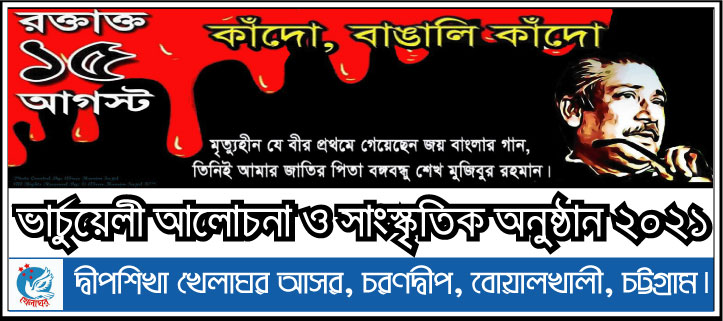 বোয়ালখালী উপজেলার চরণদ্বীপস্থ দ্বীপশিখা খেলাঘর আসর আয়োজিত ভার্চুয়্যালী জাতীয় শোক দিবস ১৫ ই আগস্ট বঙ্গবন্ধুর প্রতিৃতিতে শ্রদ্ধার্ঘ্য নিবেদনের মধ্যে পালন করা হয়।