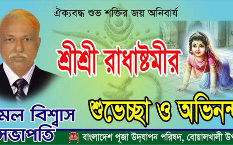 বোয়ালখালীবাসীকে শুভ মহালয়ার শুভেচ্ছা জানিয়েছেন বাংলাদেশ পূজা উদযাপন পরিষদ চট্টগ্রাম দক্ষিণ জেলার সহ সভাপতি, বোয়ালখালী উপজেলার সভাপতি শ্যামল বিশ্বাস।