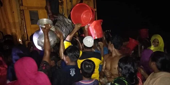 ততক্ষণে তেল পড়তে দেখে স্থানীয়রা কন্টেইনারের পিছু নেন। গাড়ি থামার সঙ্গে সঙ্গে তারা গাড়ির ফেটে যাওয়া অংশে ঝাঁপিয়ে পড়েন। এ সময় তারা বালতি, মগ, বোল, কলসি ও বোতলে করে তেল নিতে কাড়াকাড়ি শুরু করেন।