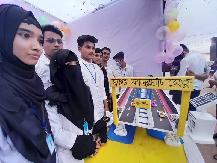 বহুলপ্রত্যাশিত কালুরঘাটে স্বপ্নের নতুন সেতুর আধুনিক নকশা প্রণয়ন করেছে একদল শিক্ষার্থী। দূর্ভোগ ঘোচাতে কালুরঘাটে প্রয়োজন বহুমুখী নতুন সেতুর।আধুনিক প্রযুক্তি ব্যবহার করে কালুরঘাটে এ সেতু নির্মাণ করলে উন্মোচিত হবে দেশের অর্থনৈতিক সম্ভাবনার দ্বার। ২৭ ডিসেম্বর, সোমবার বোয়ালখালী উপজেলা পরিষদ চত্বরে ৪৩তম বিজ্ঞান ও প্রযুক্তি সপ্তাহ উপলক্ষে আয়োজিত মেলায় বোয়ালখালী সিরাজুল ইসলাম ডিগ্রি কলেজের বিজ্ঞান শাখার দ্বাদশ শ্রেণির শিক্ষার্থীরা নিজেদের স্টলে এ উদ্ভাবন তুলে ধরেন। শিক্ষার্থী হিমায়েত কাউছার জানান, স্বপ্নের কালুরঘাট সেতুর নকশায় চার লাইন বিশিষ্ট ফুটপাতসহ সড়ক সেতু ও রেললাইন রয়েছে। সৌর বিদ্যুৎ ব্যবহার করে সেতু আলোকিত রাখা। যাত্রী সাধারণে নিরাপত্তায় সিসিটিভি ক্যামেরা স্থাপন, যান চালকের ডাটা সংরক্ষণ, গাড়ি গতি পর্যবেক্ষণ ও যান্ত্রিক ট্রাফিক নিয়ন্ত্রণের ব্যবস্থা রাখা হয়েছে। সেতুটি নির্মিত হলে চট্টগ্রাম তথা দেশ আরো এগিয়ে যাবে, উন্মোচিত হবে অর্থনৈতিক সম্ভাবনা। বিস্তার ঘটবে উৎপাদন শিল্পের। ব্যাপক উন্নয়নের পাশাপাশি দীর্ঘদিনের ভোগান্তি লাঘব হবে বলে জানান শিক্ষার্থী আরেফা সিদ্দিকা মীম ও কামরুন নেচ্ছা তিশা। উপজেলা নির্বাহী কর্মকর্তা নাজমুন নাহার বলেন, শিক্ষার্থীরা দেশকে ভালোবেসে প্রযুক্তি ব্যবহারের মাধ্যমে কিভাবে দেশকে এগিয়ে নিয়ে যাওয়ার কথা চিন্তা করছে তা প্রশংসনীয়। কালুরঘাটে নতুন সেতুর প্রয়োজনীয়তার কথা ভেবে যে নকশা প্রণয়ন করা হয়েছে তা বাস্তবায়ন হোক, তাদের স্বপ্ন সফল হোক এ আশায় করি। দুইদিনব্যাপী এ মেলায় অংশ নিয়েছে ১৬টি মাধ্যমিক বিদ্যালয় ও ৪টি কলেজ। এ উপলক্ষে বিজ্ঞান বক্তৃতা প্রতিযোগিতা ও পুরুস্কার বিতরণী অনুষ্ঠানের আয়োজন করা হয়েছে। সোমবার এর উদ্বোধন করেন উপজেলা পরিষদ চেয়ারম্যান মো. নুরুল আলম।