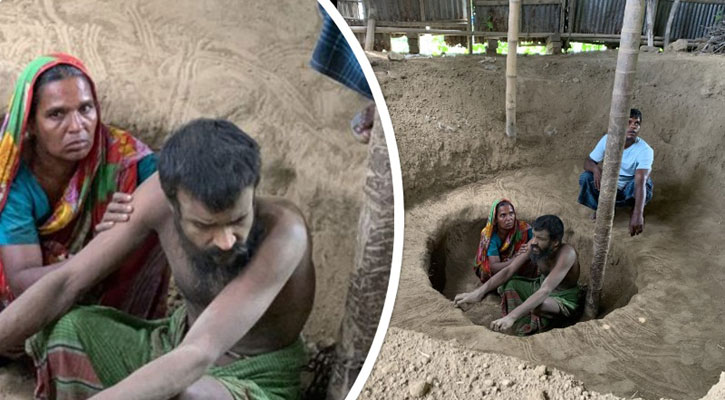পরিবারের সদস্যরা জানান, গত ১৭ বছরের শেকলবন্দি জীবনে ঘরটির মাটির মেঝে হাত দিয়ে খুঁড়ে খুঁড়ে রবিউল নিজেই তৈরি করেছেন নিজের থাকার অন্য জগত।