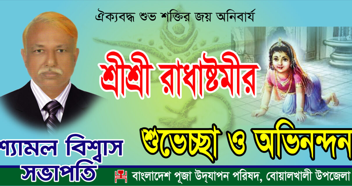 বোয়ালখালীবাসীকে শ্রী শ্রী রাধাষ্টমীর শুভেচ্ছা জানিয়েছেন বাংলাদেশ পূজা উদযাপন পরিষদ চট্টগ্রাম দক্ষিণ জেলার সহ সভাপতি,বোয়ালখালী উপজেলার সভাপতি শ্যামল বিশ্বাস।